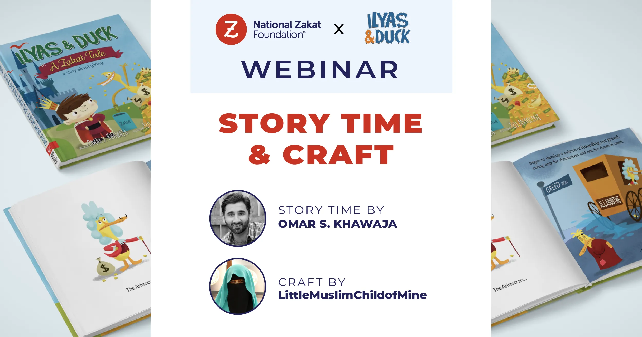 Date: Sunday April 17th, 2022 | Time: 3 PM (EDT) | 1 PM (PDT) Join us with the writer of Ilyas and Duck, Omar Khawaja as he reads Zakat Tales live! Story time will be followed by a creative and interactive craft session with Aqsa from Little Muslim Child of Mine!